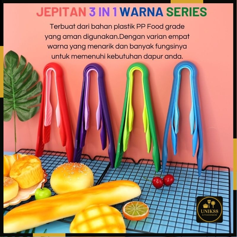 Penjepit Kue Plastik Capitan Unik88 3In1 Warna Warni Untuk Roti Dan Gorengan
