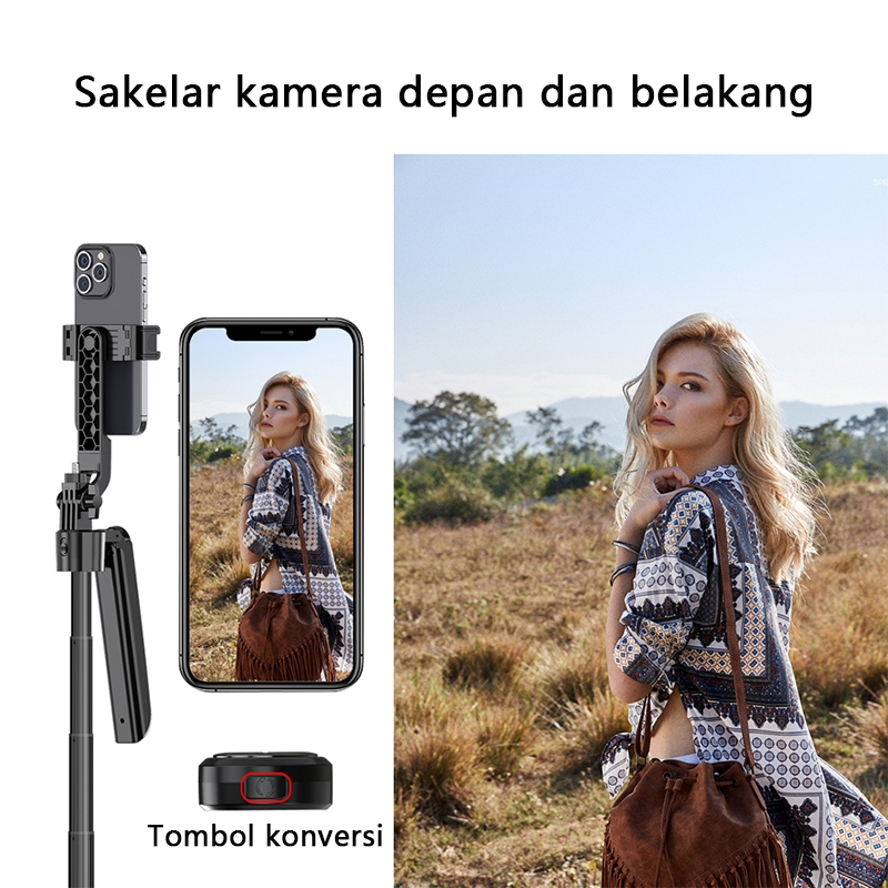 TOOREA Pelacakan Wajah Otomatis Tripod Selfie Stick 1.8m Gimbal Handphone Stabilizer 360° Stand 4-leg Tongsis dengan LED