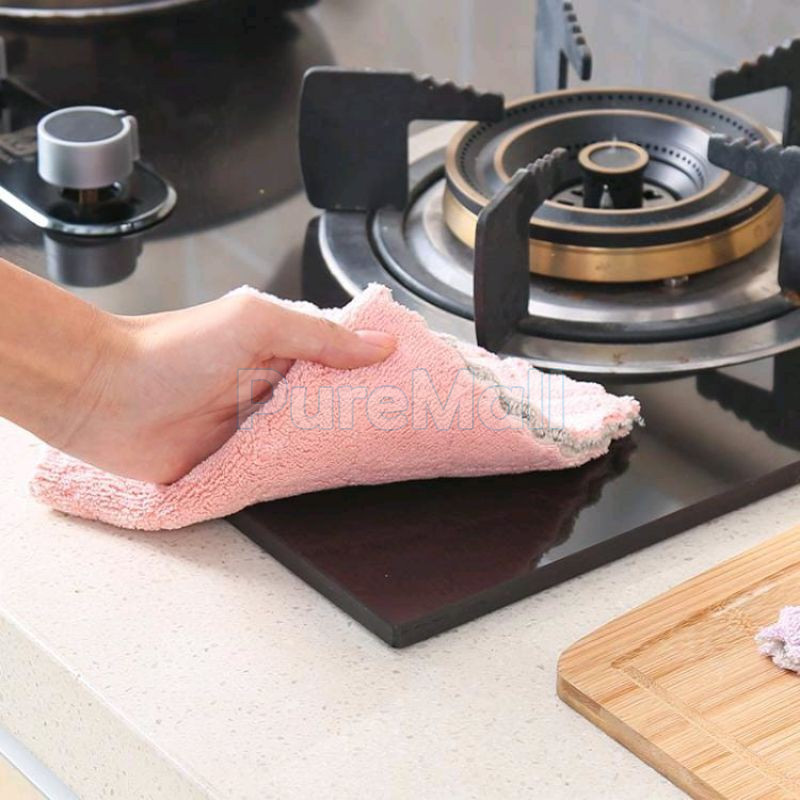 Kain Lap Dapur 3Pcs 4Pcs Microfiber Anti Minyak Lap Cuci Serbaguna