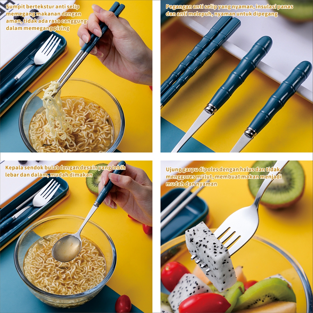Sendok Garpu Yumsun Stainless Steel 3 In 1 Set Alat Makan Gaya Korea