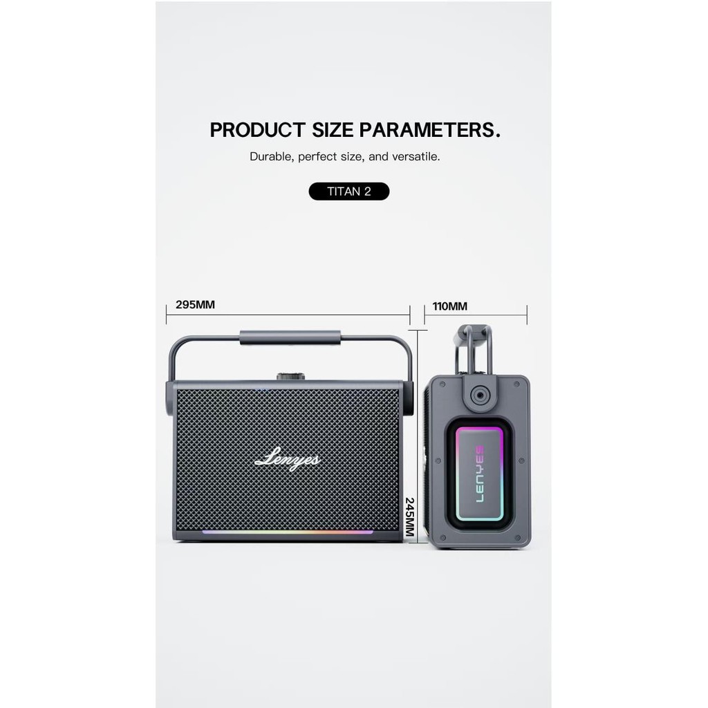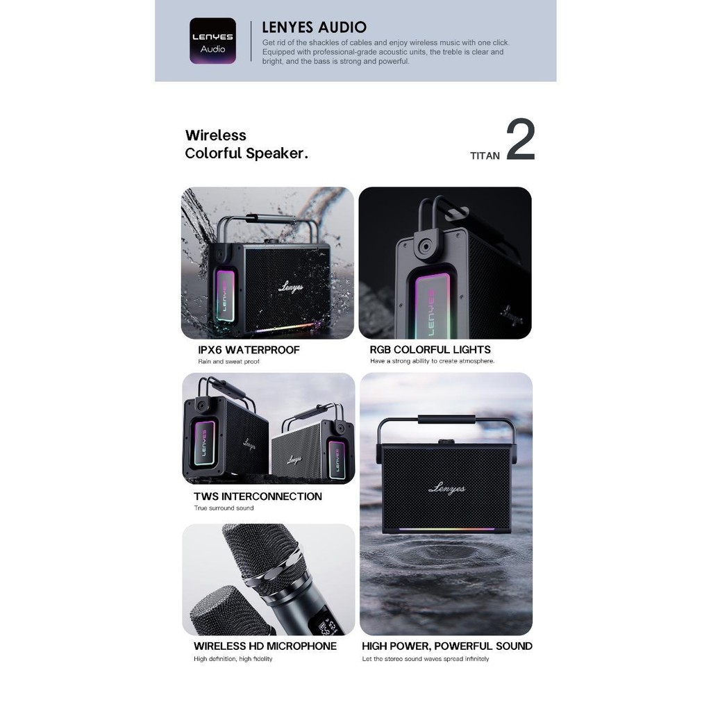 LENYES 200W Karaoke Speaker Outdoor KTV 5.3 TWS Subwoofer High Power Bass IPX6 RGB Light + Microphone TITAN 2