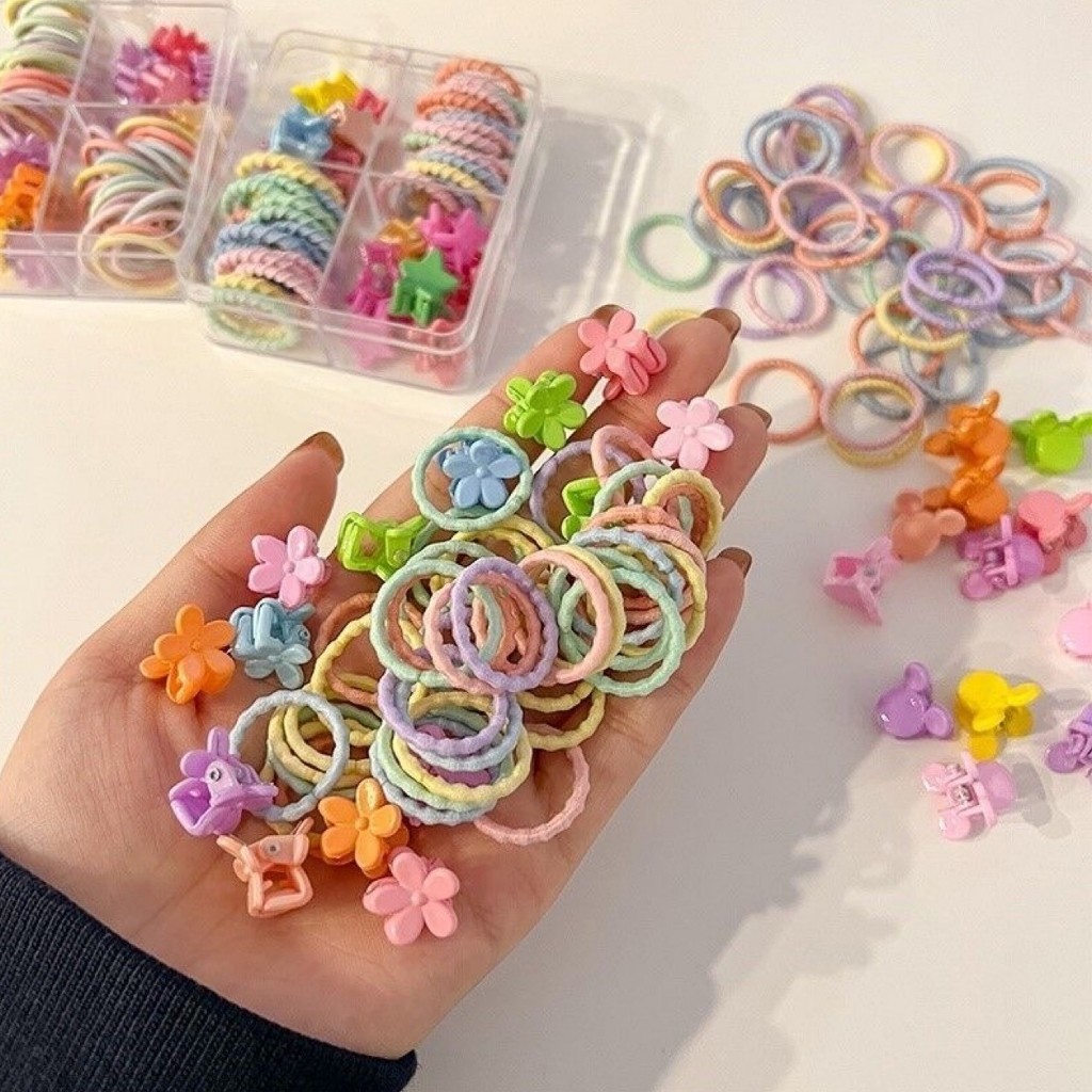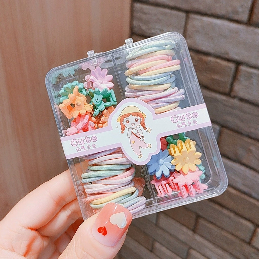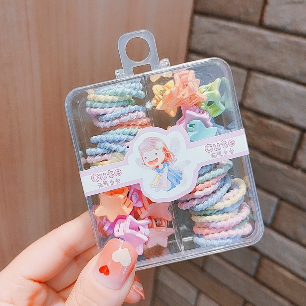 [PROMO] Set Ikat Rambut Jepitan Aksesoris Rambut Anak Perempuan Karet Rambut Mix Pastel Kuncir Jepit Warna Warni Korean Style Karet Jepit Box Gift Set