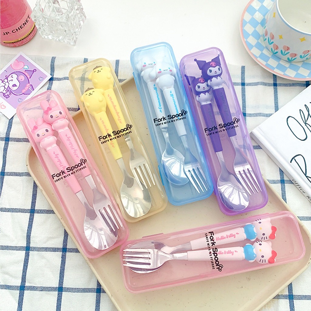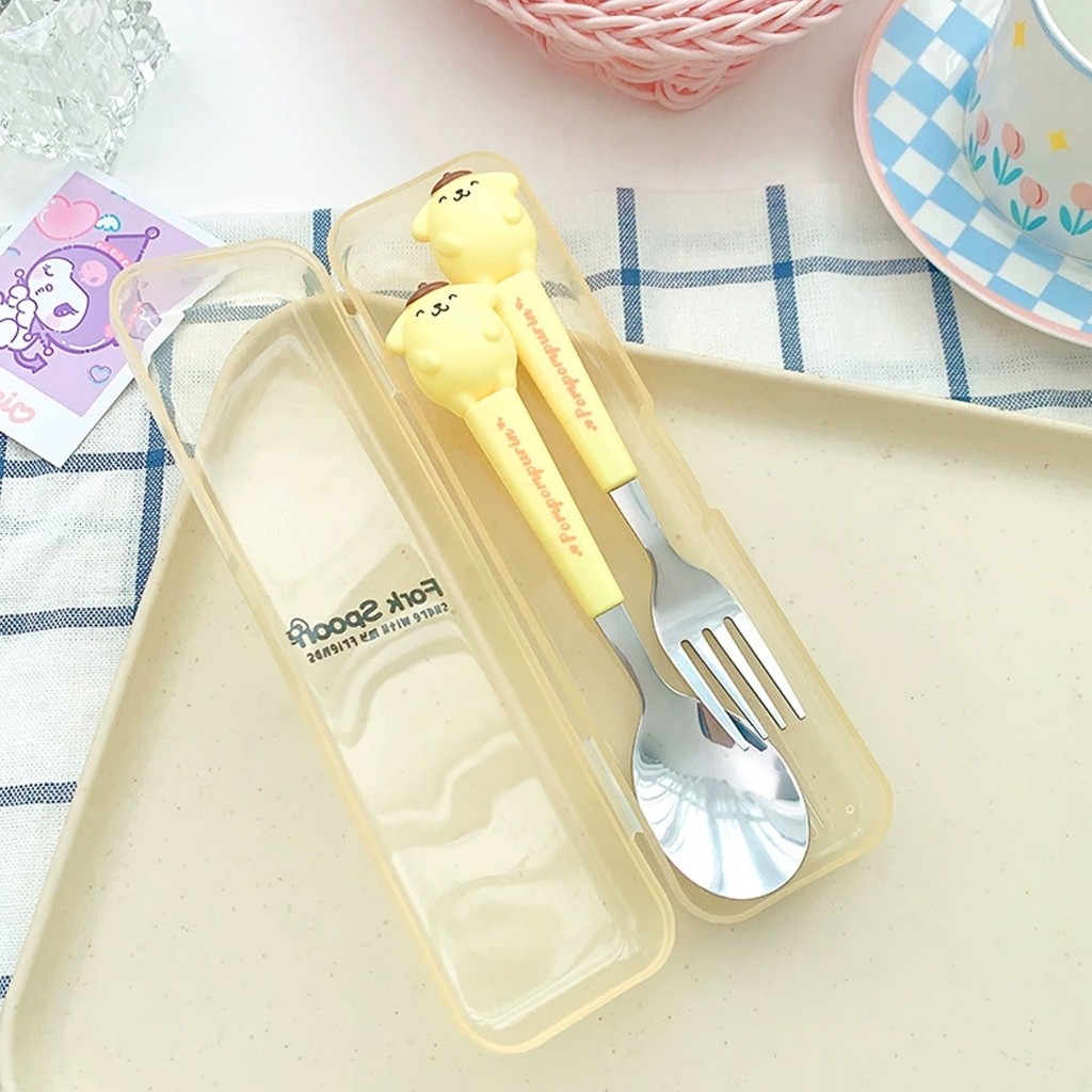 [PROMO] Set Sendok Garpu Lucu Anak GERATIS Case Karakter Stainless Stell Kado Ultah Lucu Nyota