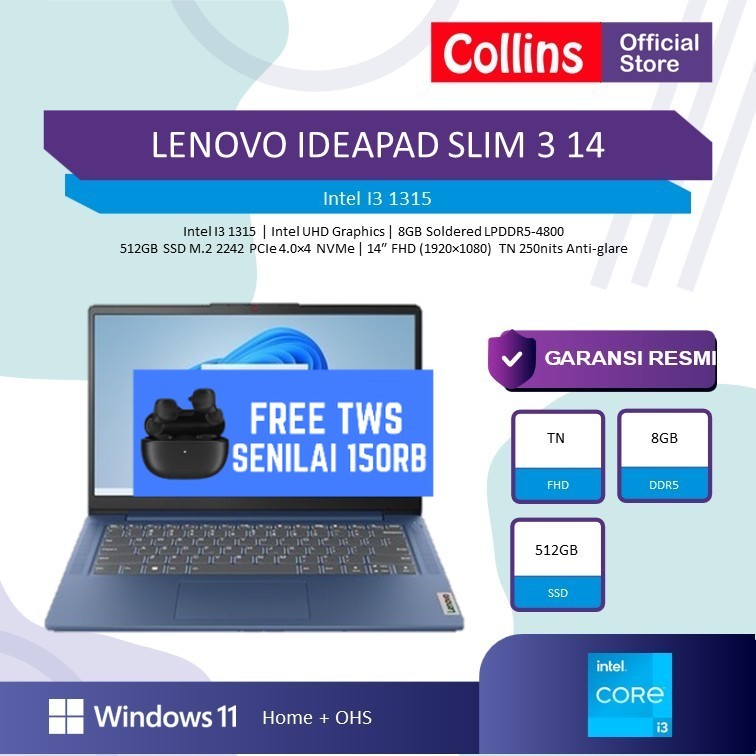 LENOVO IDEAPAD SLIM 3 14 I3 1315 8GB 256GB W11+OHS+M365B 14.0FHD BLIT 2Y PREM+ADP BLUE/GREY