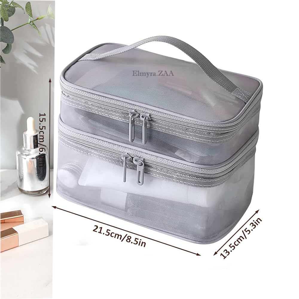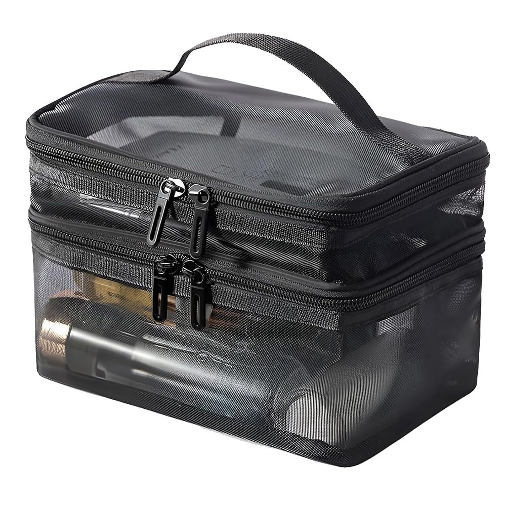 Tas Kosmetik Pouch Make Up Mesh Jaring Hitam Tansparan Bahan Polyester Pasir Travel Bag Organizer