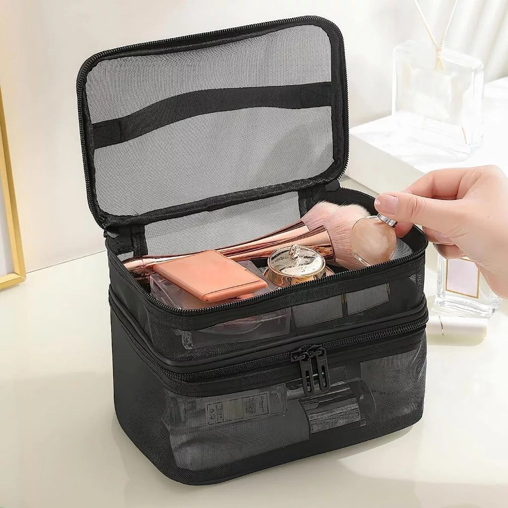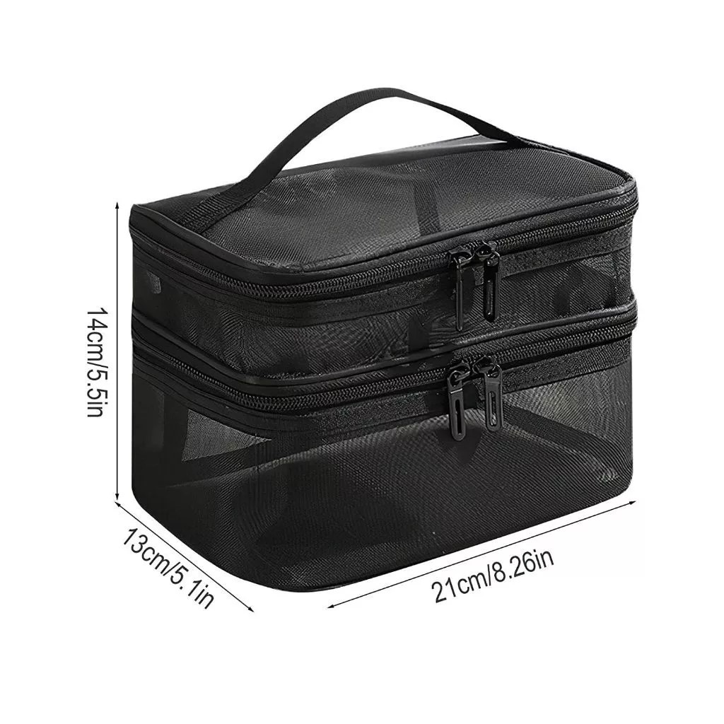 Tas Tempat Kosmetik Jaring Double Layer Transparan Pouch Travel Koper Mesh Make Up Organizer Pouch Bag Dua Lapis Tas Kos
