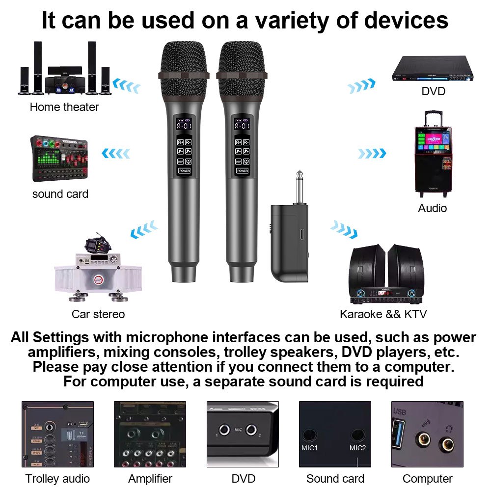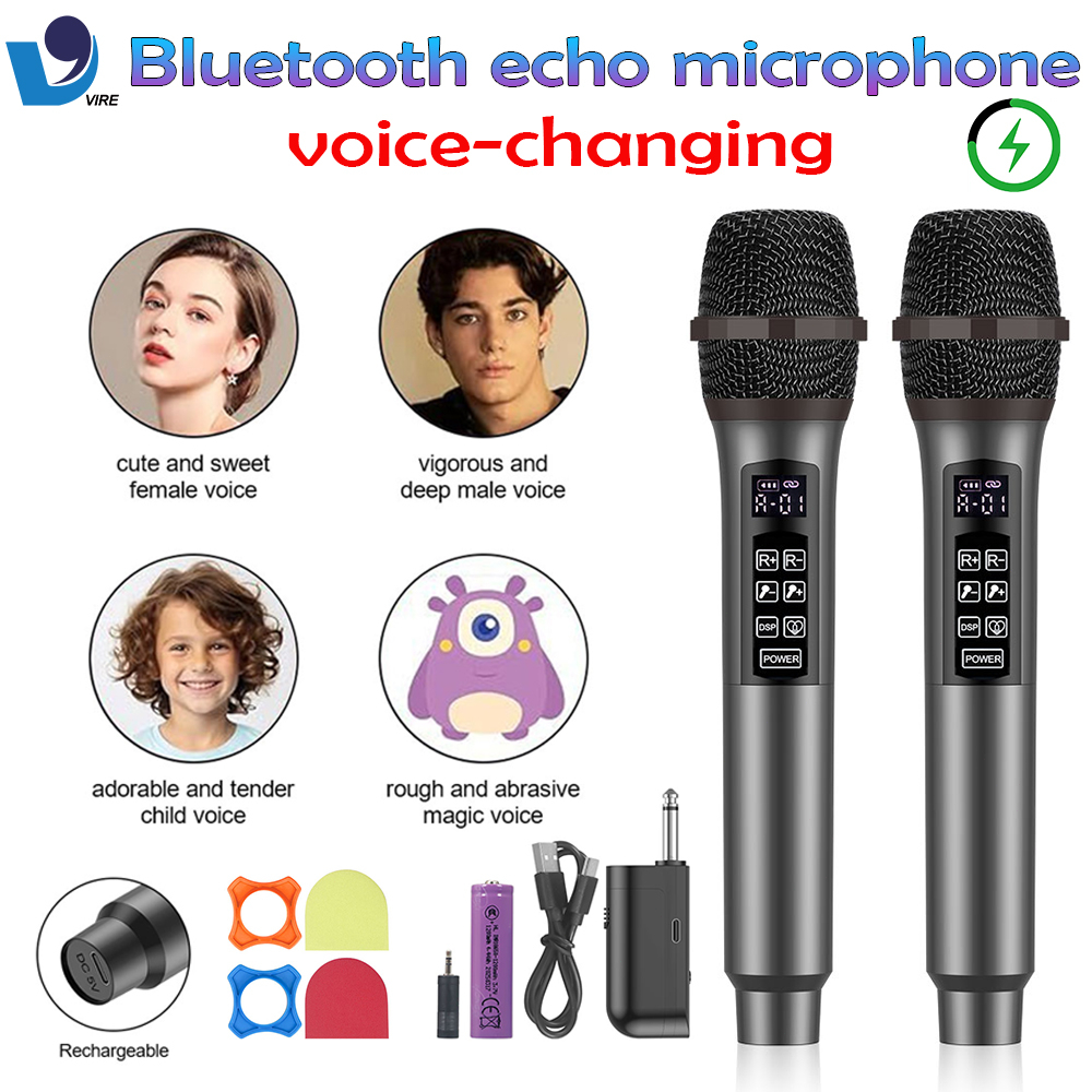VIRE 2pcs Karaoke Mikrofon charged Wireless Bluetooth Microphone Voice change echo reverberation Profesional UHF