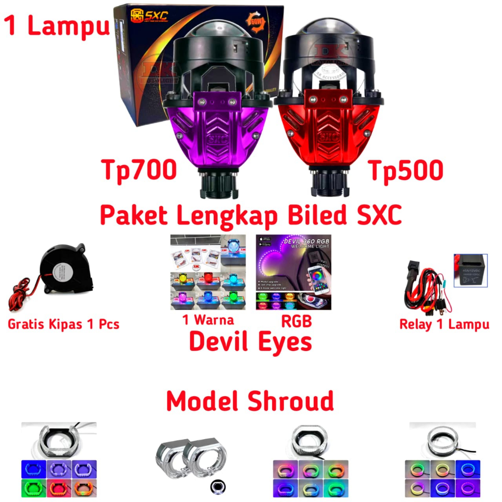 Paket Lengkap Full Set 1 Lampu Projector BILED SXC TP500 / TP700 60 Watt+Shroud 2,5 Inch untuk Motor