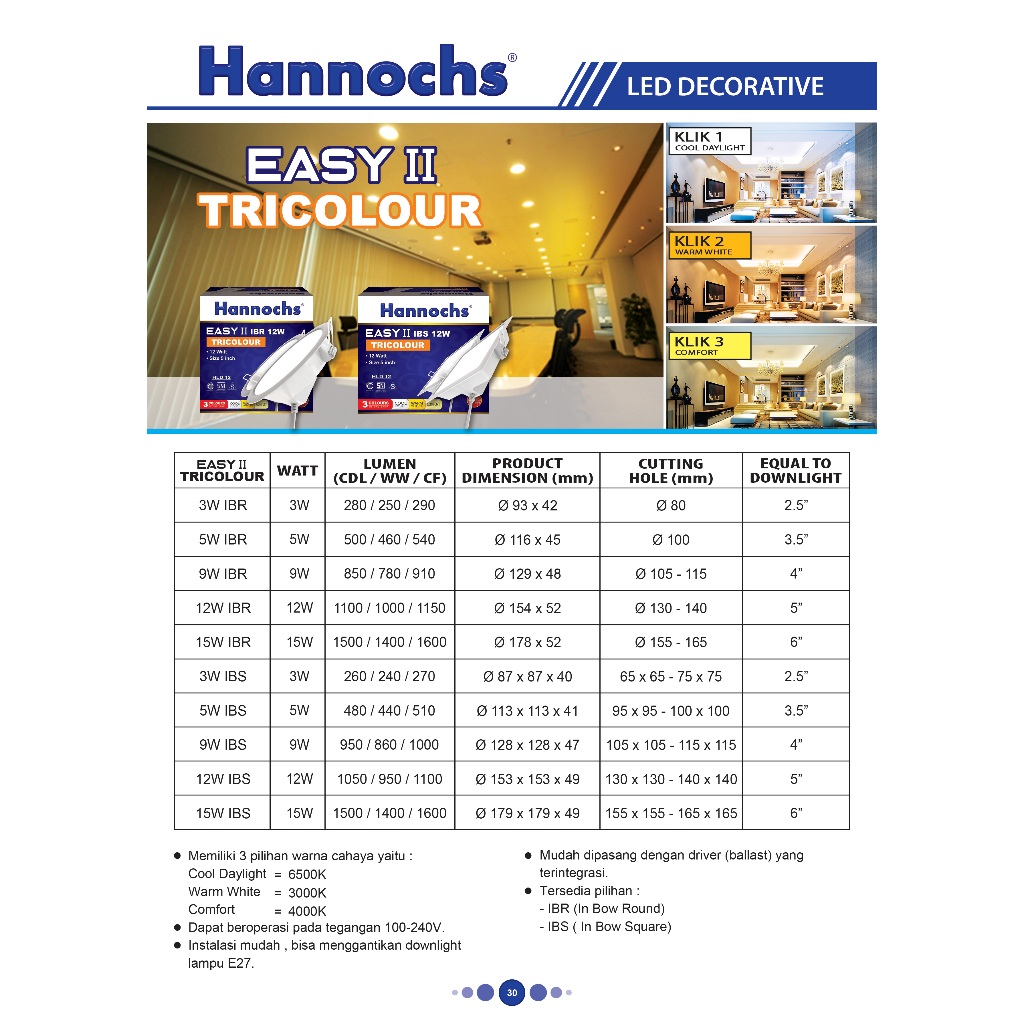 Lampu Downlight Hannochs EASY 3w - 20w 3WARNA Tricolor Bulat Panel led hannochs downlight led hannochs Downlight 3w Down