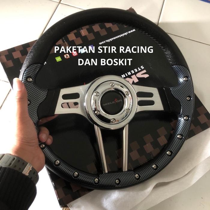 [Star](PAKETAN) Stir Racing dan Boskit sepaket R14 inc universal SKELETON steering wheel - Hitam carbon