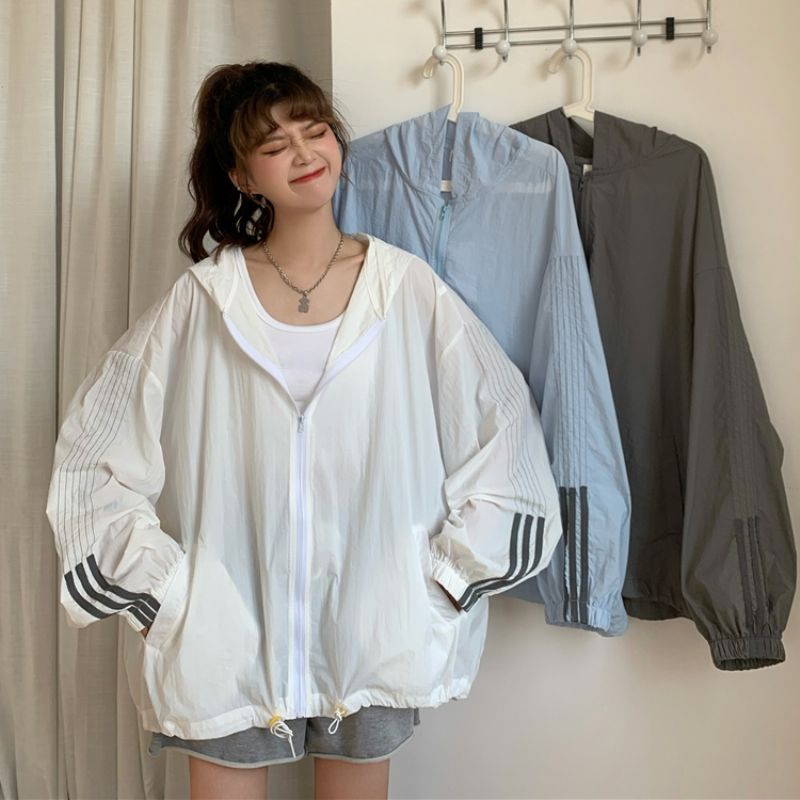 [ ✅ ] Aroana Love jaket wanita Perlindungan UV Kardigan Tabir Surya Pakaian Longgar Ukuran Besar Lengan Panjang Siswa Berkerudung Mantel Tipis