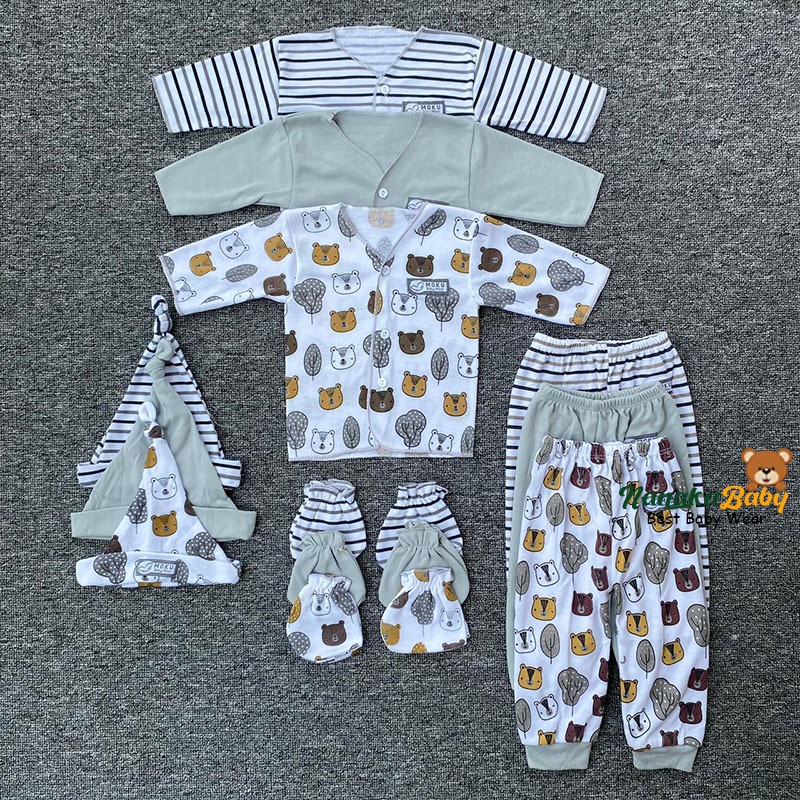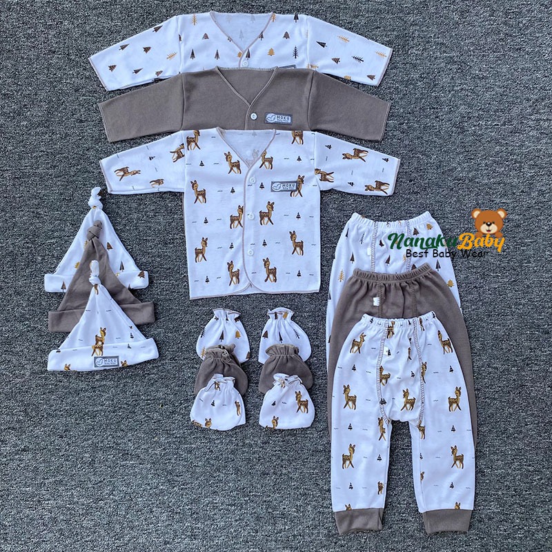 Nanaku Baby - Paket Newborn Isi 15 Pcs Perlengkapan Bayi Baru Lahir Usia 0-3 Bulan || Setelan Panjang NB Series Moku