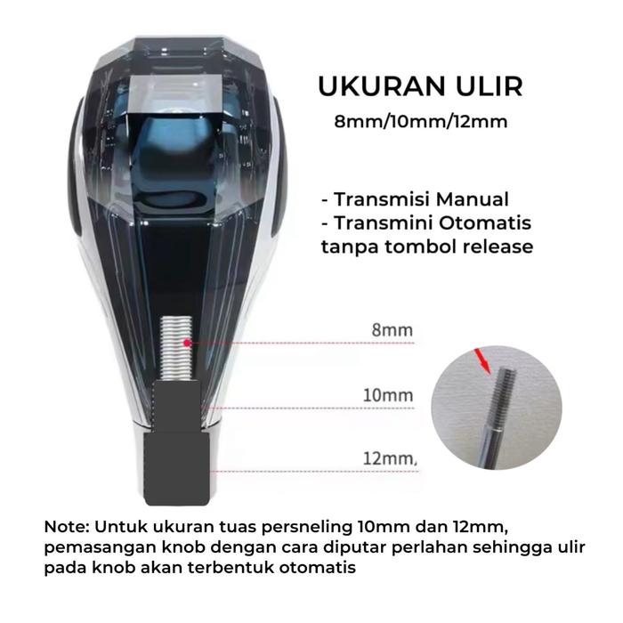 [Star]Car Shift Knob Mobil Kristal LED RGB 3 Sisi Tuas Persneling Mobil Premium Universal - Biru|Silver Honda