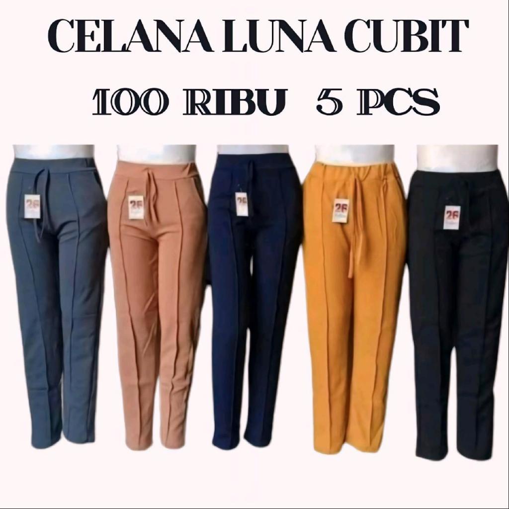 ( 5 PCS ) LUNA CUBIT WANITA DEWASA Bawahan Wanita Celana Panjang Terbaru Pinggang Karet Kekinian