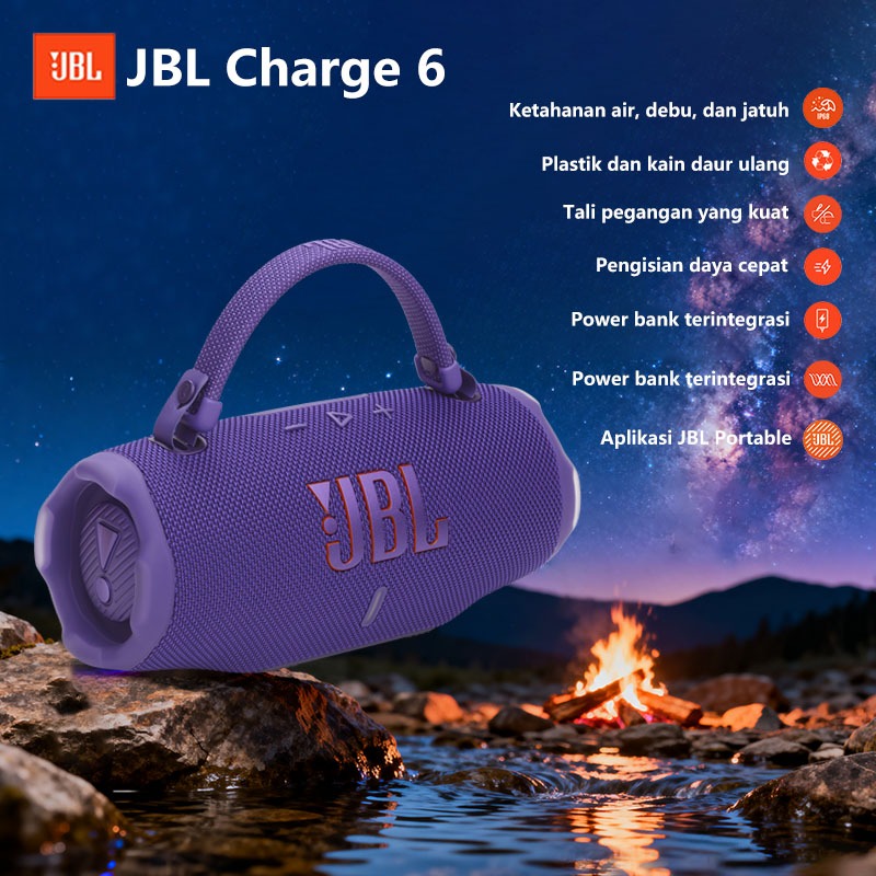 JBL Charge 6 Speaker portabel tahan air dan tahan jatuh dengan JBL Pro sound yang mantap dan tali pegangan yang dapat di