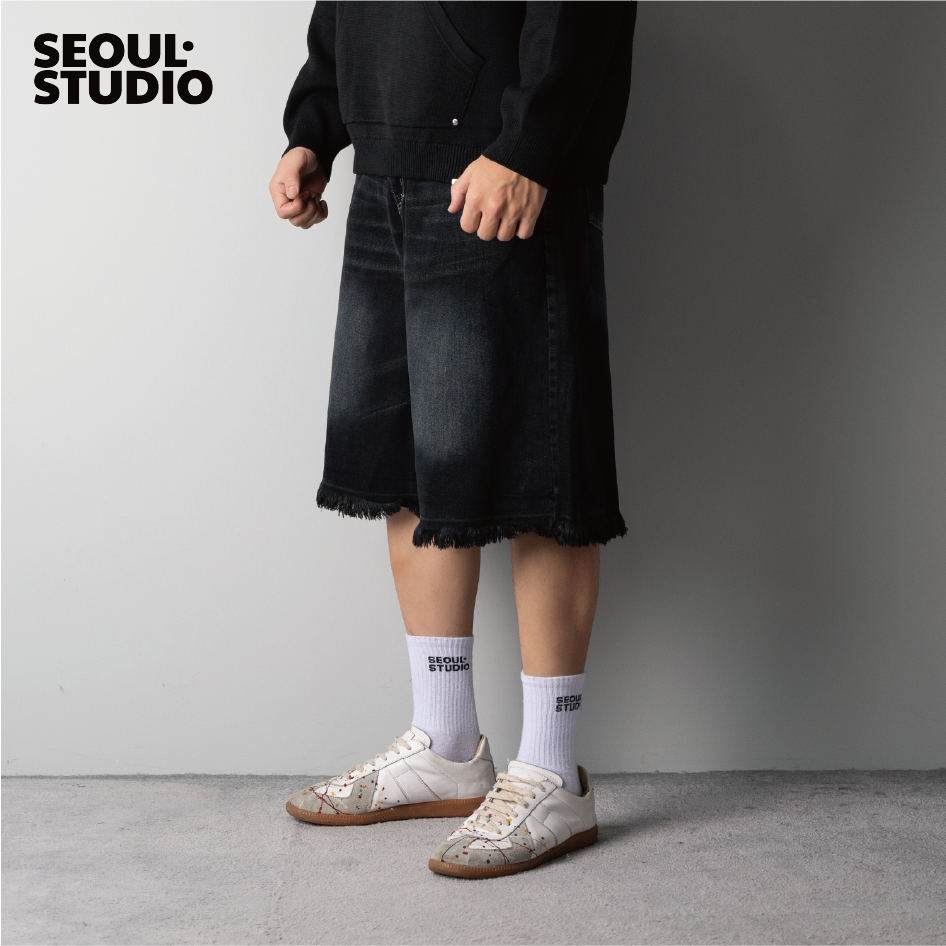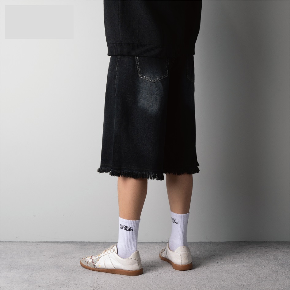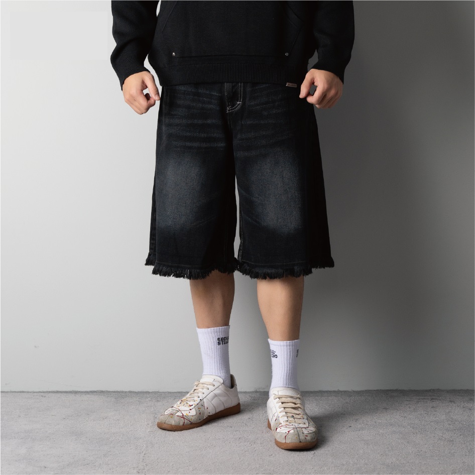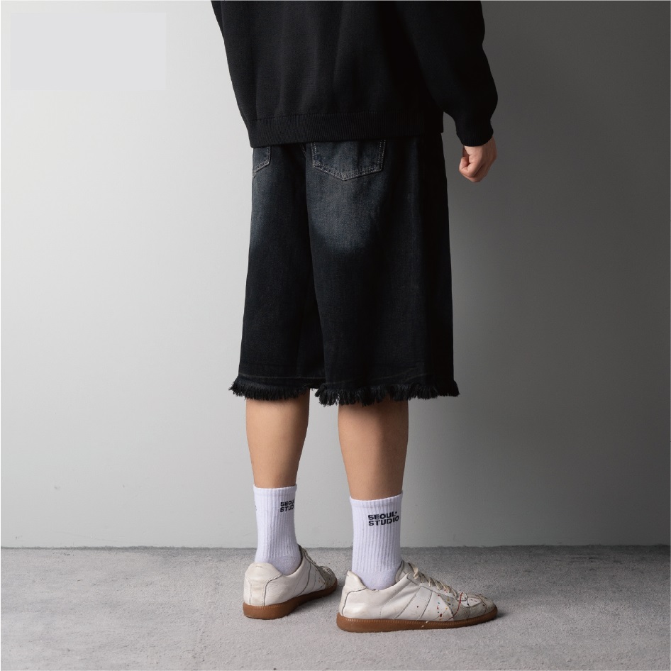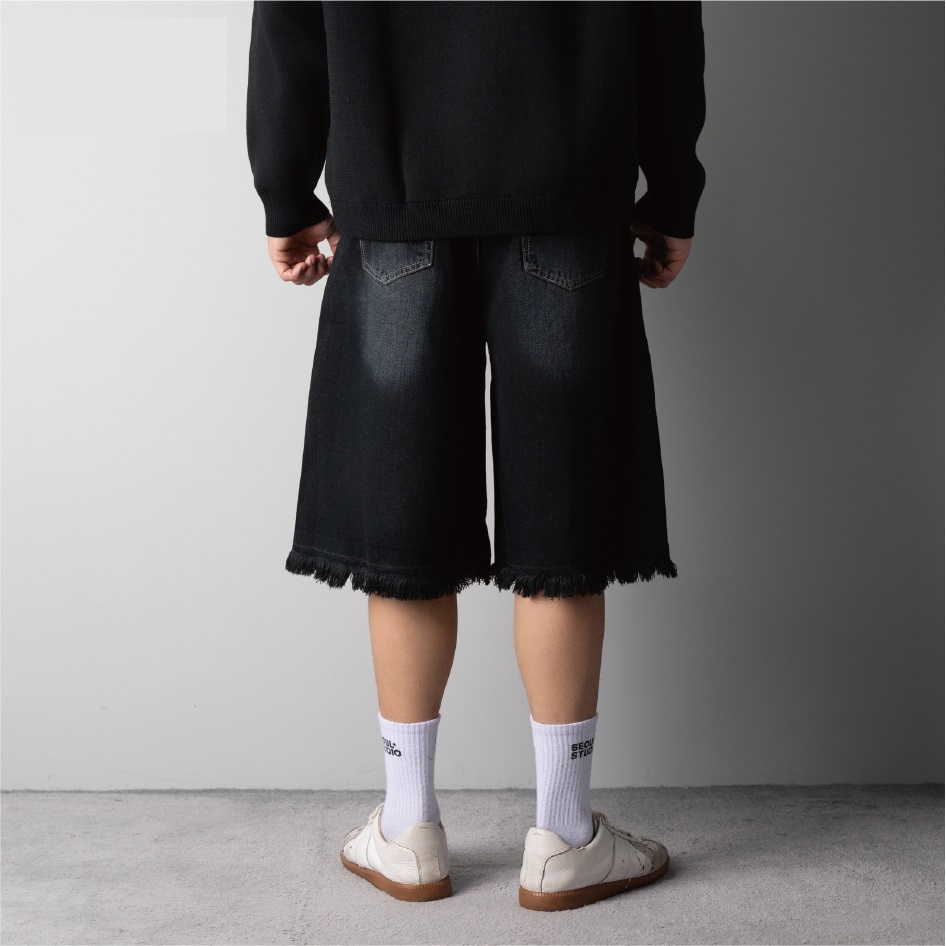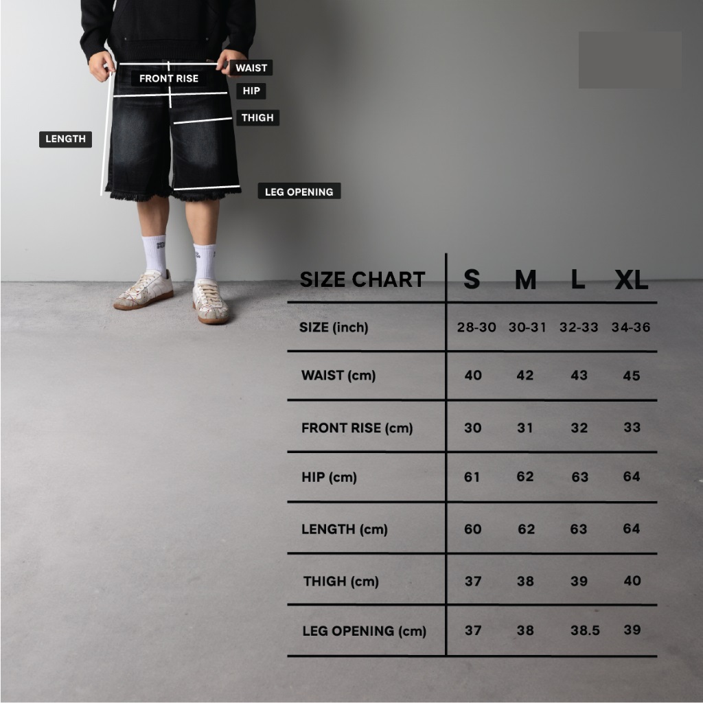 celana jeans short pendek baggy cowok cewek Bermuda Pants(Black Washing) | Jorts Denim