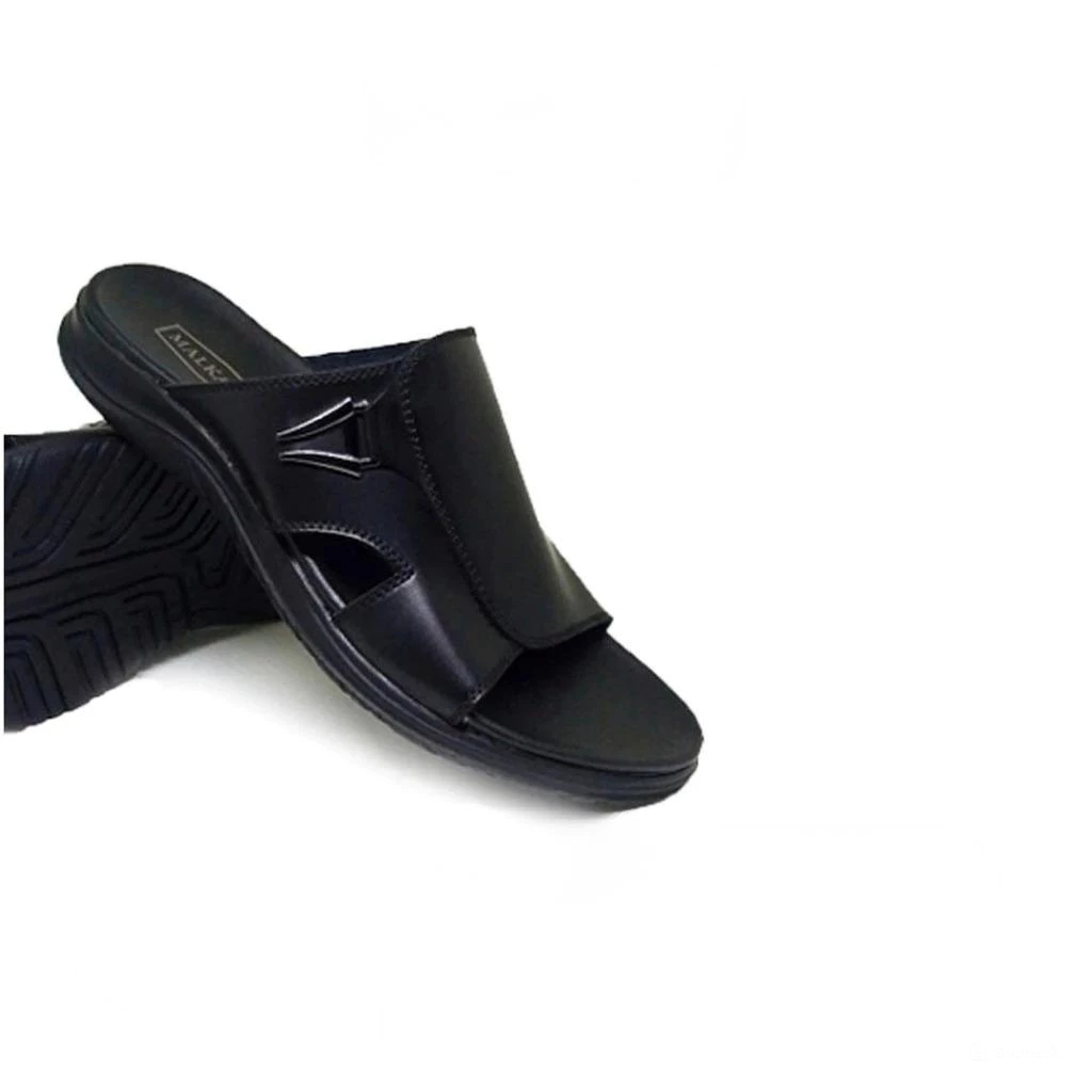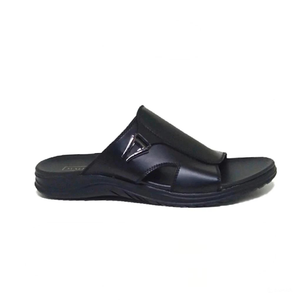 Sandal Pria Slide Kulit Black.040 Ukuran Besar & Kecil 38-48 / Sendal Selop Bapak-Bapak Slider Murah