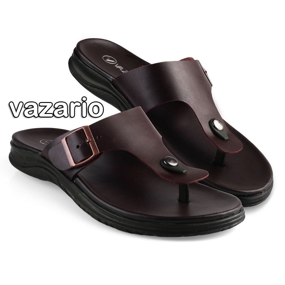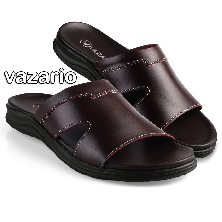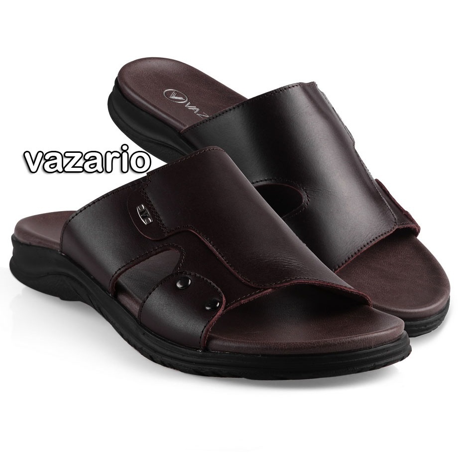 Vazario Sandal Kulit Pria Selop Kokop Brown Nyaman