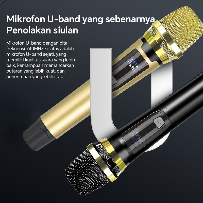 Wireless Microphone Vocal Suara Terbaik Dual Handheld Mikrofon Bluetooth Nirkabel MIC Karaoke Digital Tanpa Kabel UHF Mi