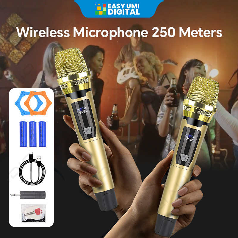 Profesional Double Microphone Nirkabel With Receiver System Mikrofon Tangan Mikrofon Isi Ulang Mikrofon Langsung Luar RB