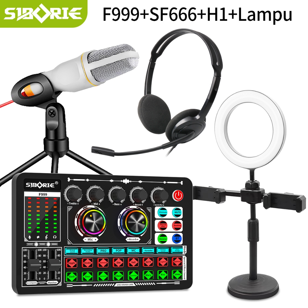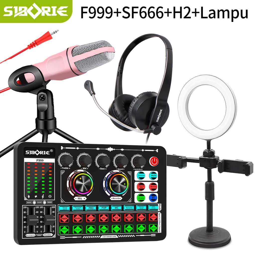 Siborie F999+SF666+H1/H2+Lampu Paket Komplit Live streaming of all kit eqipment Sound Card Microphone Headphone lampu se