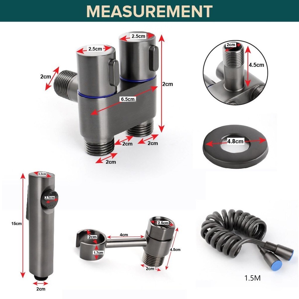 Kran Air Cabang Jet Shower SUS 304 Keran Toilet 1/2 Inch Selang 1.5M Bidet Spray