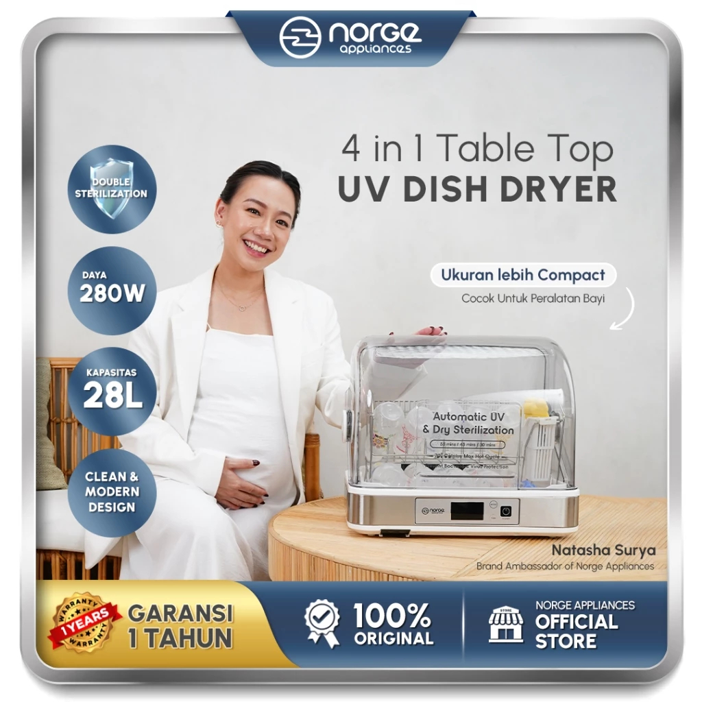 Norge 4in1 Table-top UV Dish Dryer 28L 280W / Sterilizer/ Rak Piring Pengering Piring