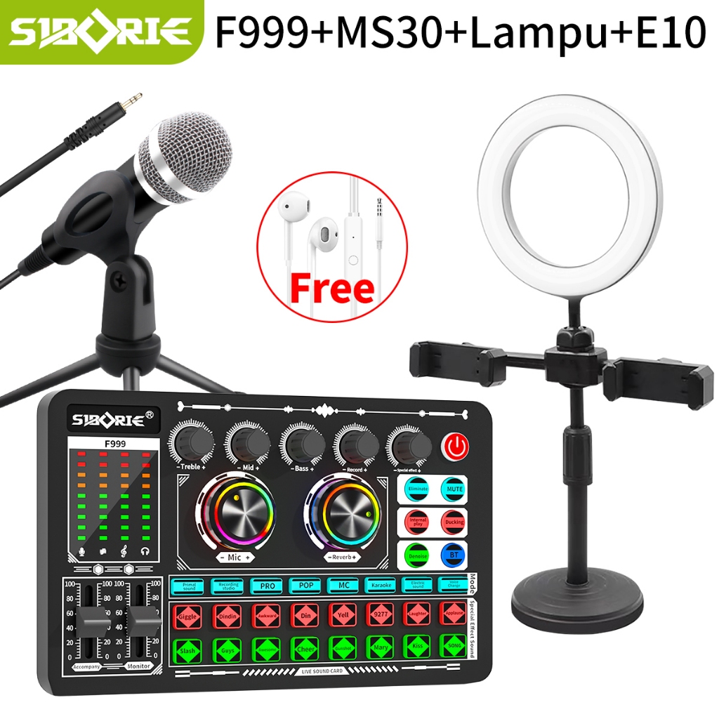 Siborie F999 Soundcard Original Paket Lengkap Mixer Bluetooth Soundcard For Streaming Langsung Karaoke Siap