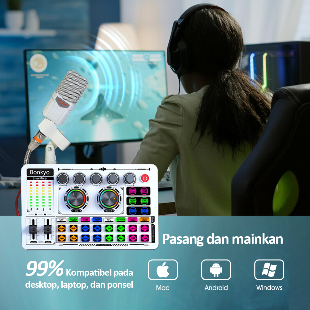 Bonkyo F999 SoundCard Bluetooth compatible External Wireless DJ Mixer Pengurangan Kebisingan untuk Streaming Langsung