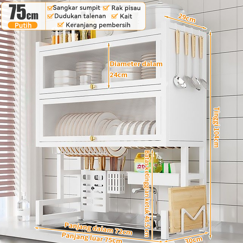 2 Susun Rak Piring Wastafel Dengan Kabinet Rak Wastafel Cuci Piring Rak Piring Stainless Steel Rak Dapur Multifungsi Den