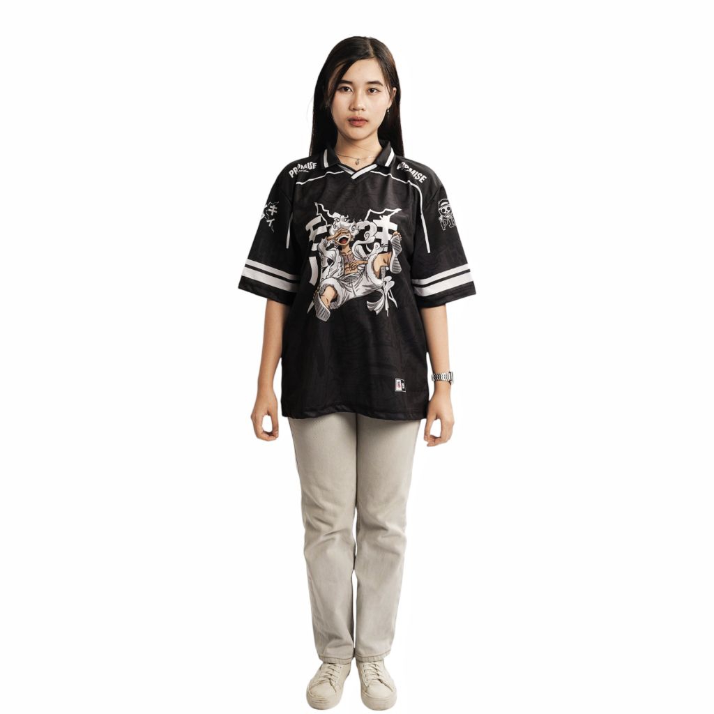 Jersey Boxy Oversize Jumbo PROMISE Onepiece Luffy Gear 5 Vintage Skena Unisex Pria Wanita Sport Big Size Hitam Putih
