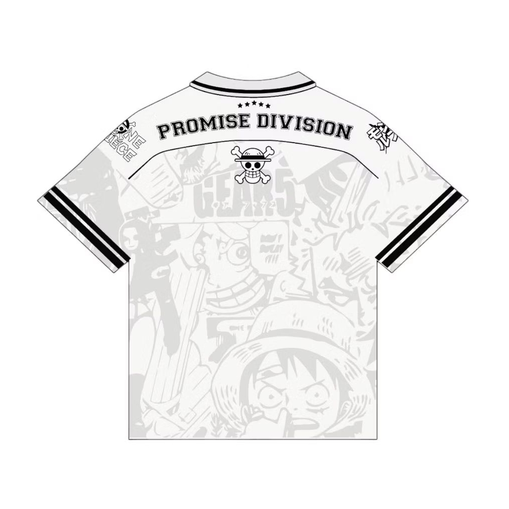 Jersey Boxy Oversize Jumbo PROMISE Onepiece Luffy Gear 5 Vintage Skena Unisex Pria Wanita Sport Big Size Hitam Putih