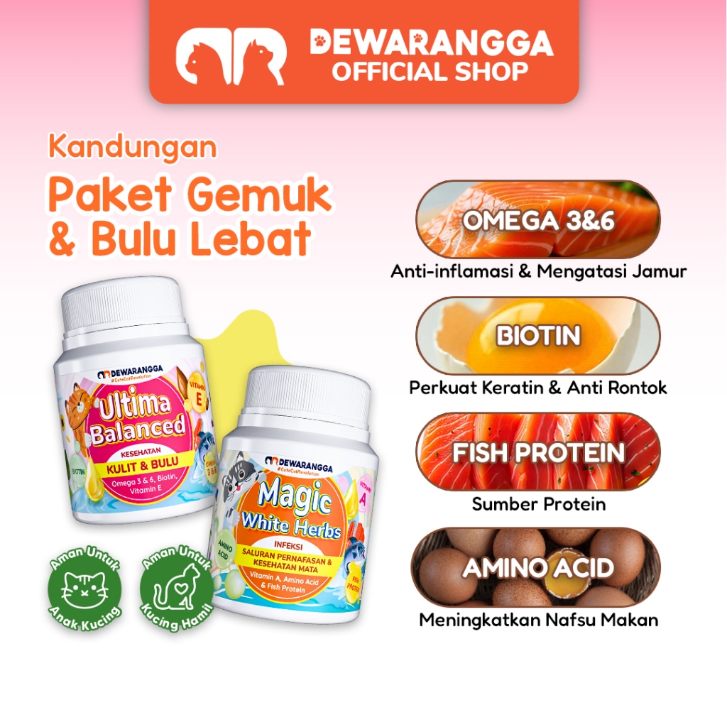 Dewarangga Paket Vitamin Kucing GEMUK & BULU LEBAT untuk Meningkatkan Nafsu Makan, Melebatkan Bulu dan Penggemuk Kucing