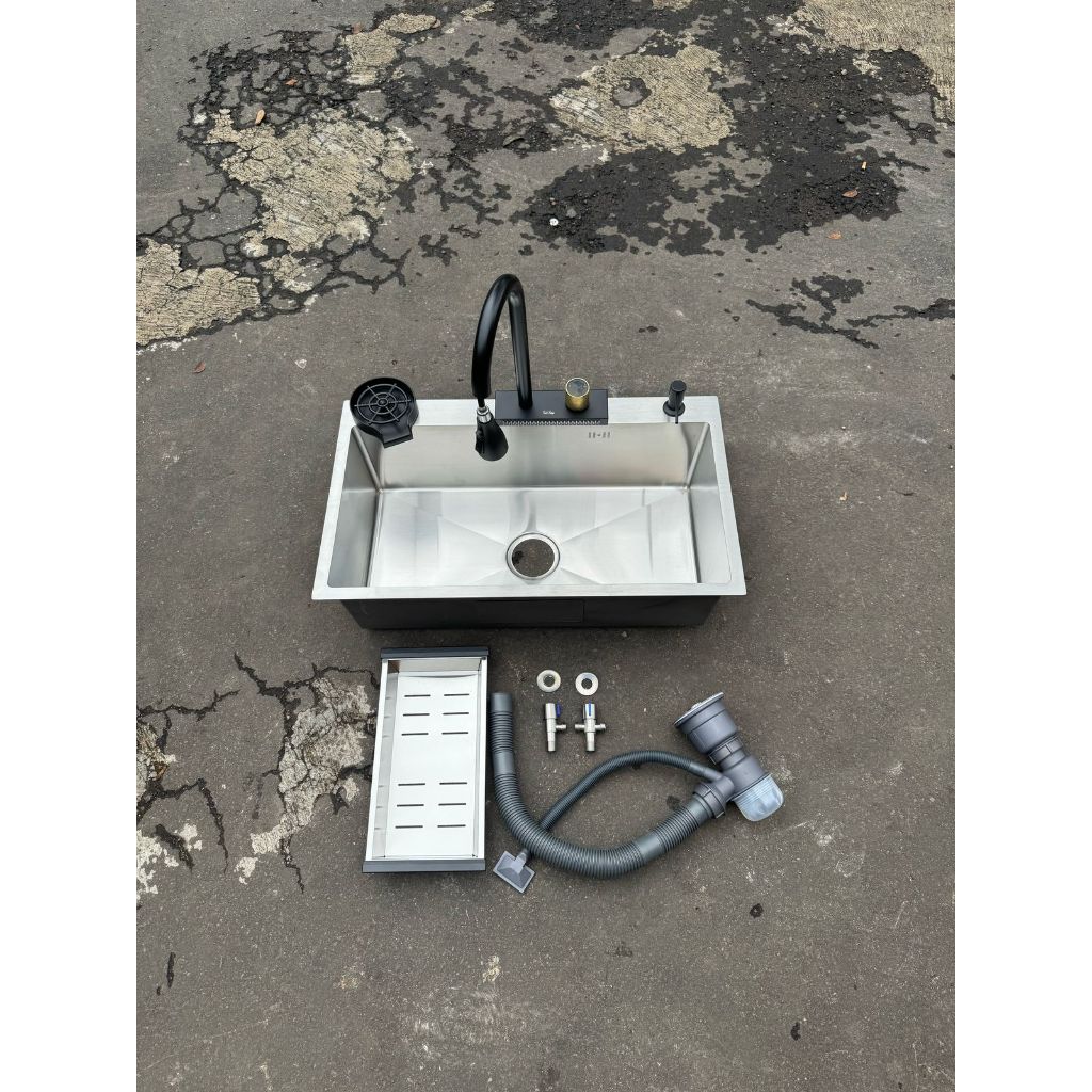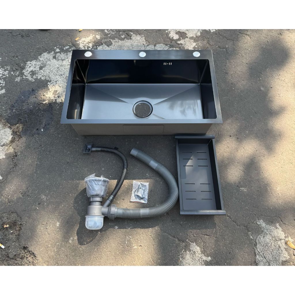 PAKET KITCHEN SINK STAINLESS 75X45 SILVER LUBANG BESAR DALAM / BAK CUCI PIRING DAPUR BCP HANDMADE STAINLESS
