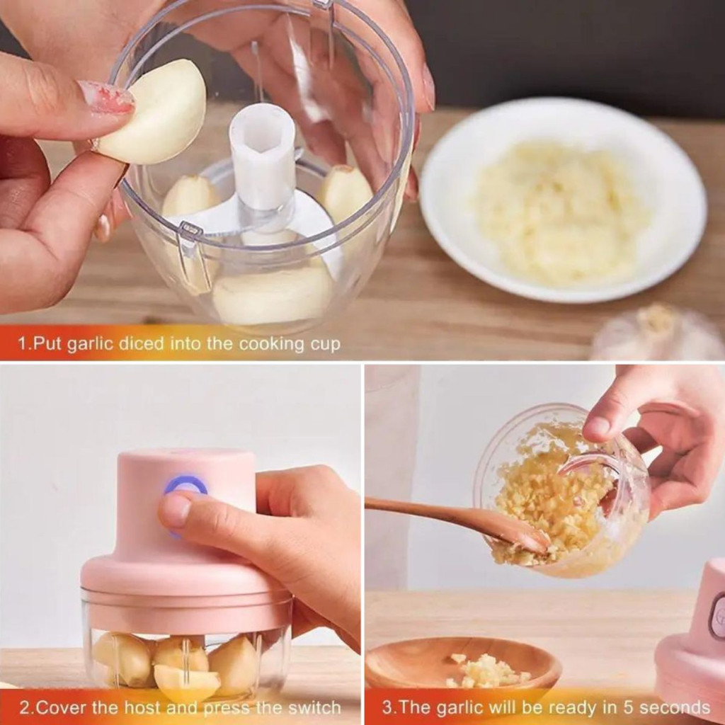 Blender Chopper Mini Elektrik Portable TANPA KABEL Alat Penggiling Penghalus Bawang Cabe Bumbu Daging Cas Usb RT
