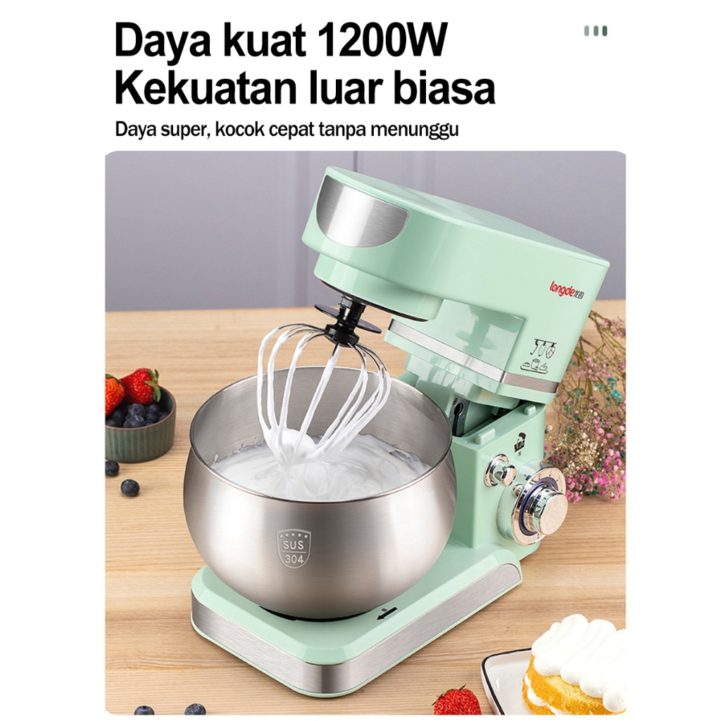 Stand Mixer 5.5 Liter Variable Low Watt Tech - 6 Speed Stainless Steel dengan 3 Alat Pengaduk