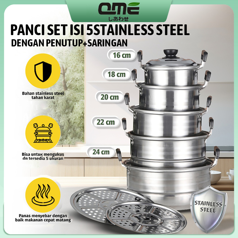 QME 12in1 Panci Steamer Set Stainless isi 5 pcs + 2pcs Kukusan Panci Bahan Tebal PREMIUM/Panci Stainless set