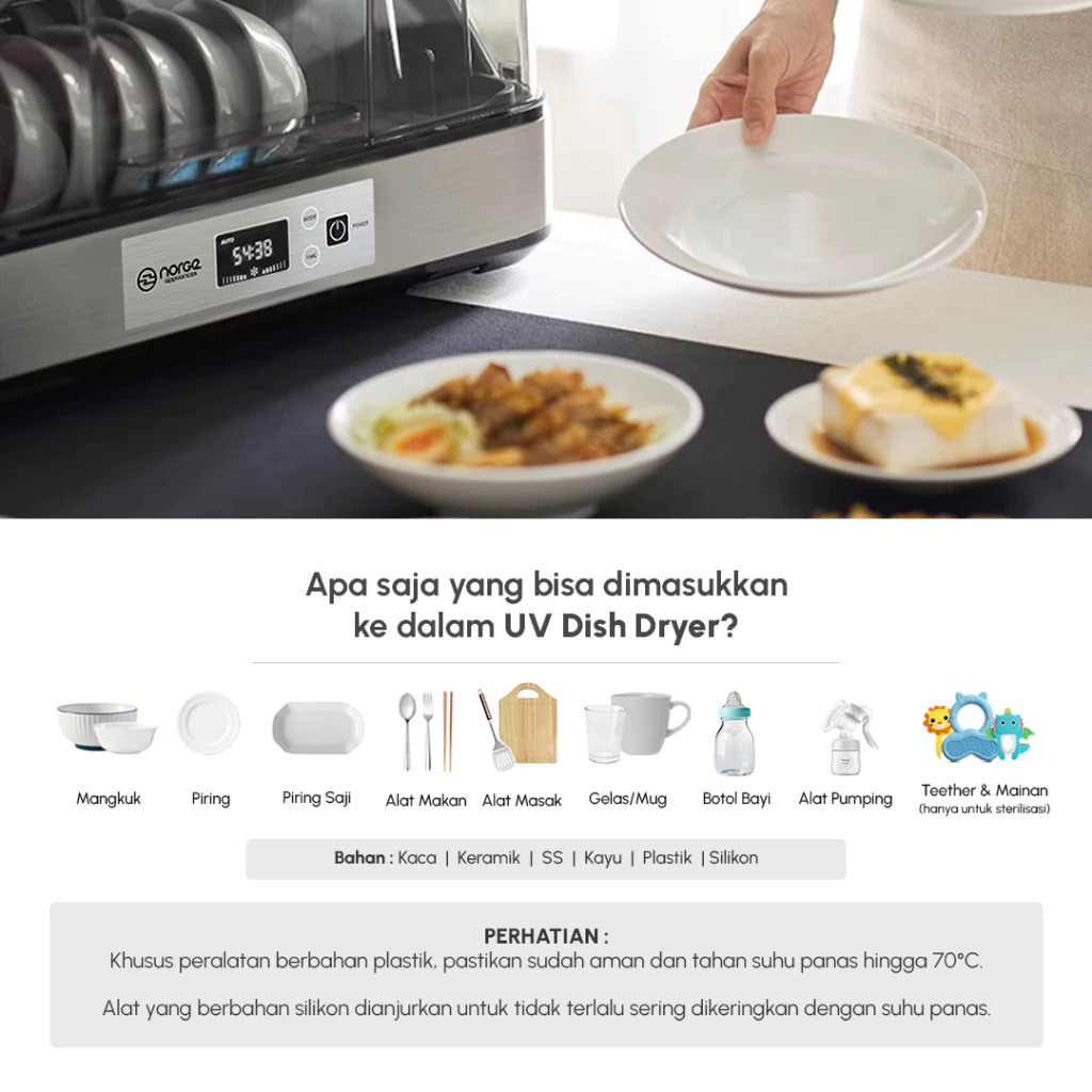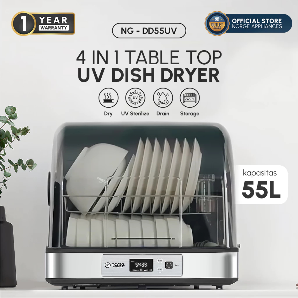 Norge 4 in 1 Table-top UV Dish Dryer NG-DD55UV 55L/UV Sterilizer/Rak Pengering Piring