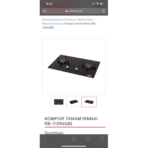 KOMPOR GAS TANAM 2 TUNGKU RINNAI RB 712 NGB RB-712NGB / BUILT IN HOB KOMPOR GAS TANAM RINNAI RB712NGB