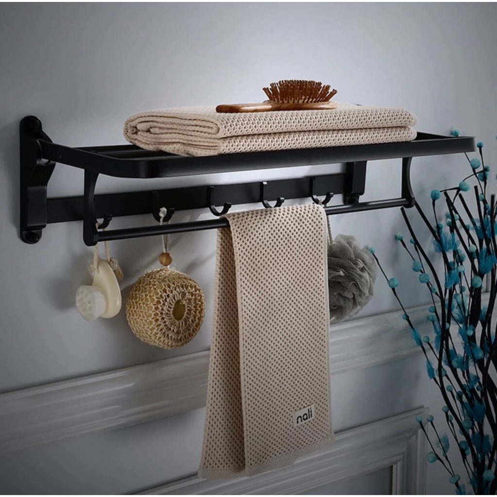 RAK HANDUK LIPAT STAINLESS HITAM /GANTUNGAN BAJU HANDUK BLACK TOILET WC KAMAR MANDI