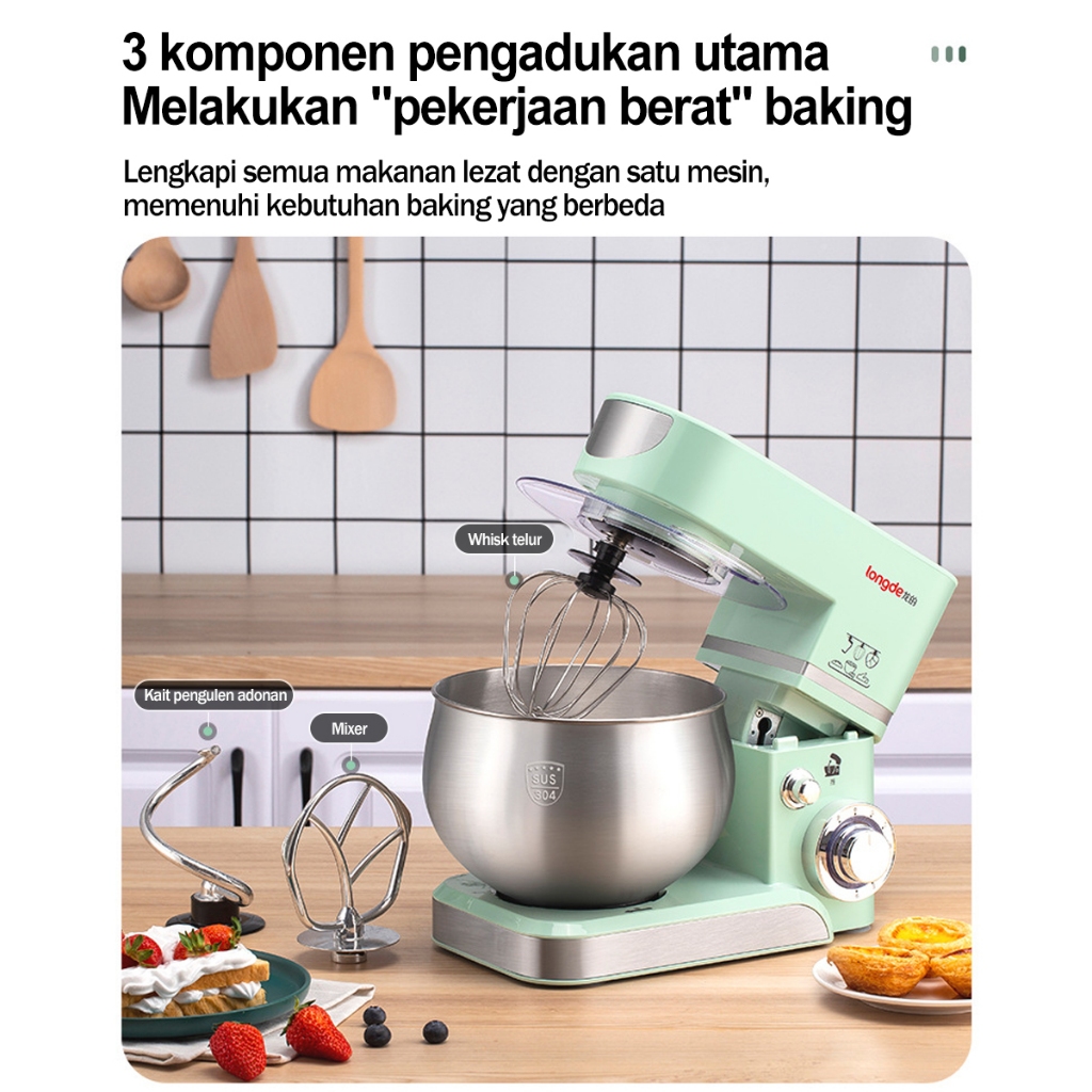 Stand Mixer 5.5 Liter Variable Low Watt Tech - 6 Speed Stainless Steel dengan 3 Alat Pengaduk