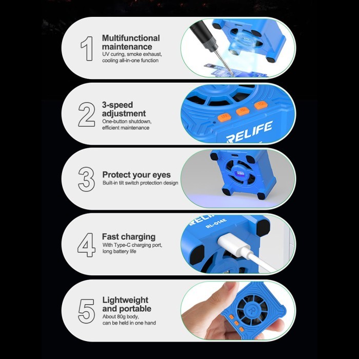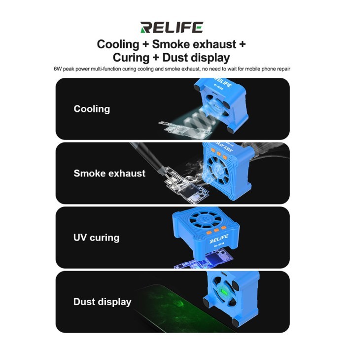 Kipas RELIFE RL-014E 4 in 1 UV Curing Cooling Fan Cooling+Exhaust+Curing+Dust Display Motherboard Heat Dissipation LV La