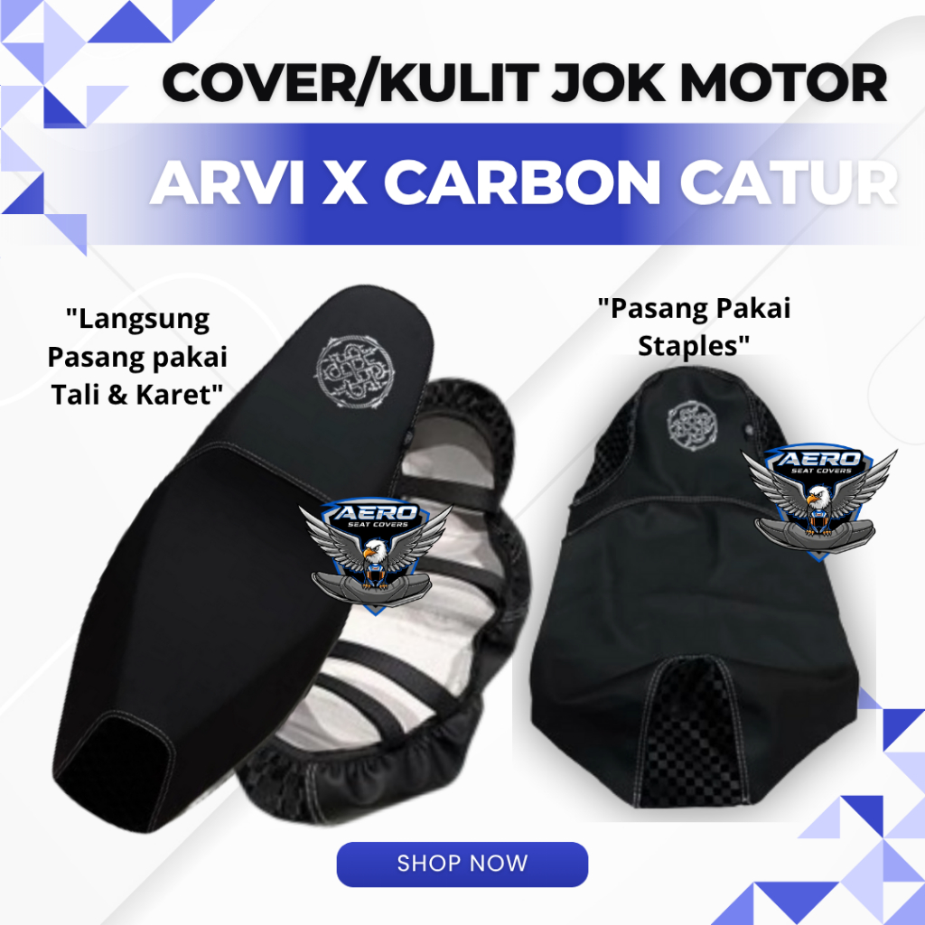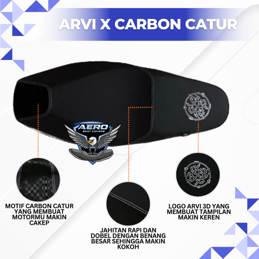 Cover/Kulit Jok Motor Model Arvi Logo 3D X Carbon Catur Pcx Aerox Nmax Vario Mio Beat Adv Curva