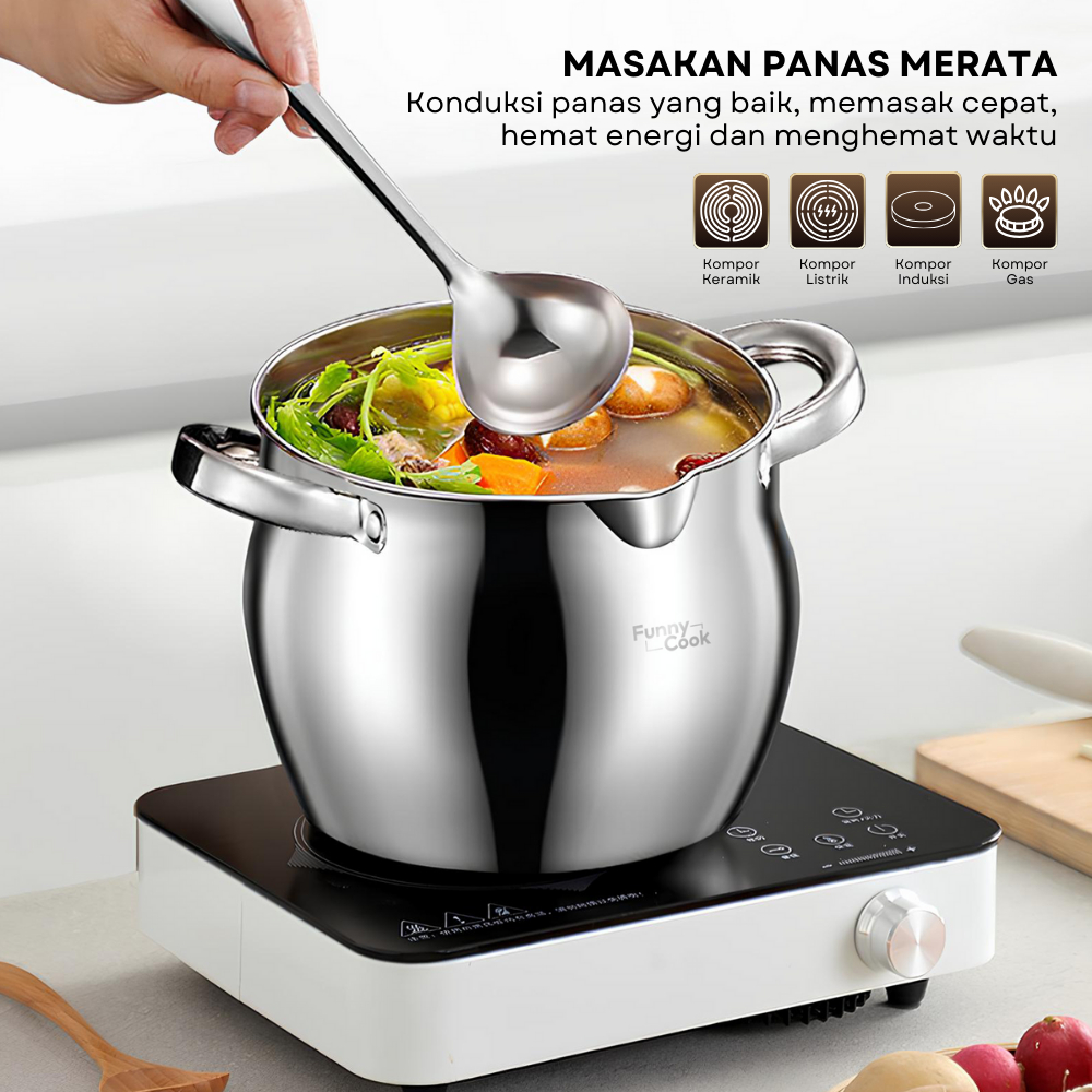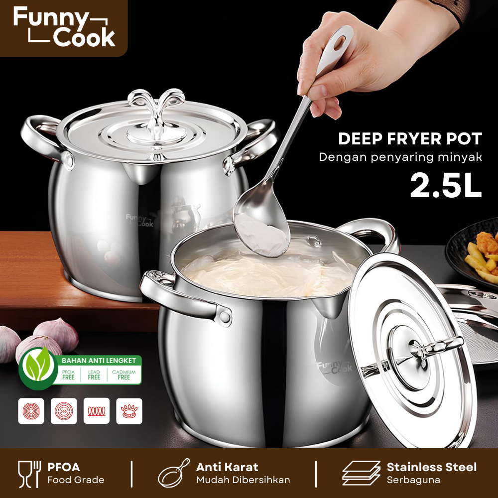 FUNNYCOOK Deep Fryer Multifungsi Penyaring Minyak Bahan Stainless Steel Anti Karat Tebal Panci Kapasitas 2.5L Free Cento