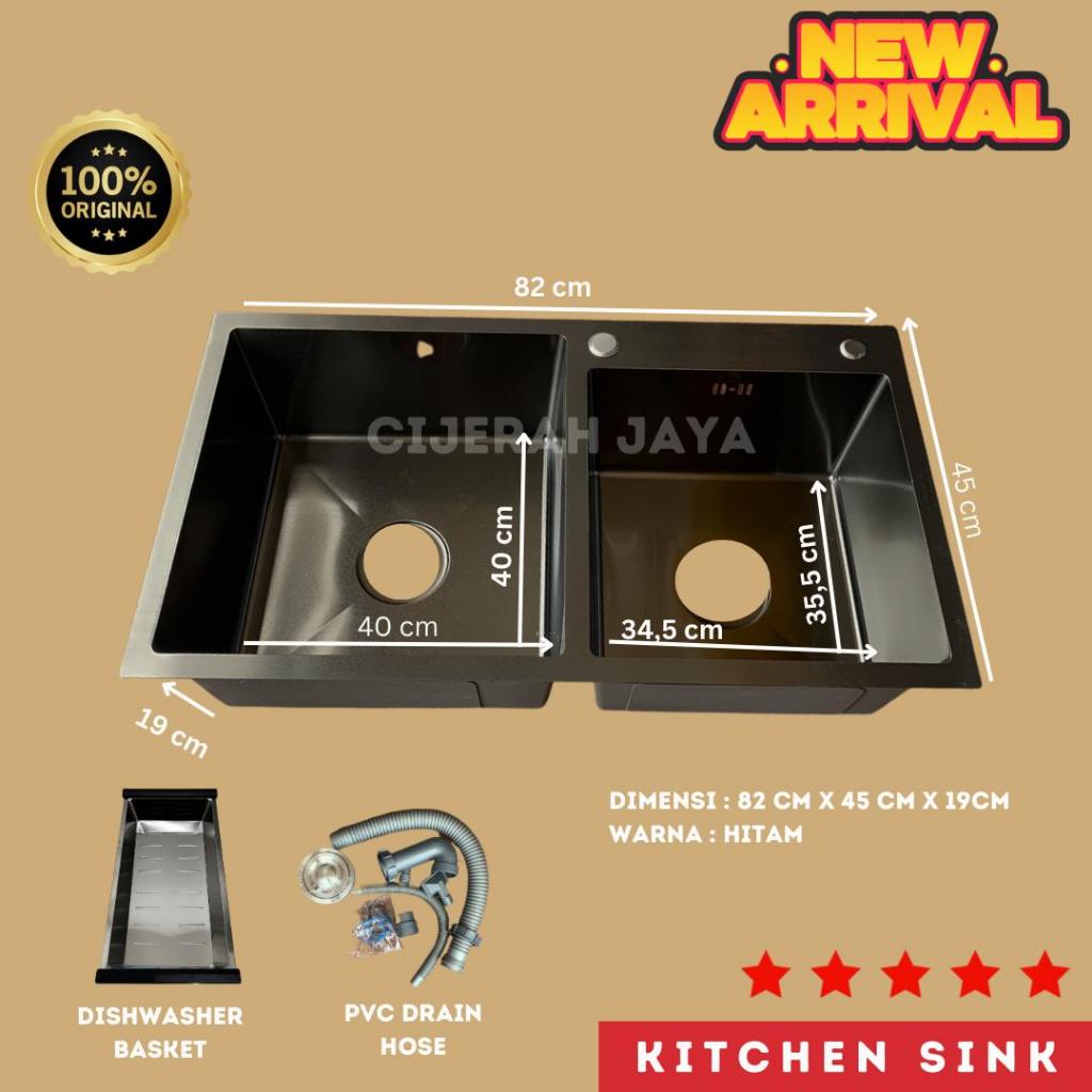 PAKET KITCHEN SINK BANO STAINLESS SUS 304 BLACK HITAM / BAK CUCI PIRING WASTAFEL LUBANG DALAM PREMIUM SEMODEL VALPRA BUL