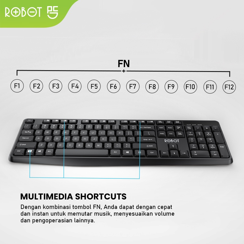 [ BEST SELLER ] ROBOT Combo Keyboard dan Mouse Wireless Compact Silent Klik Tidak Berisik Original Tipe KM3100 Garansi 1