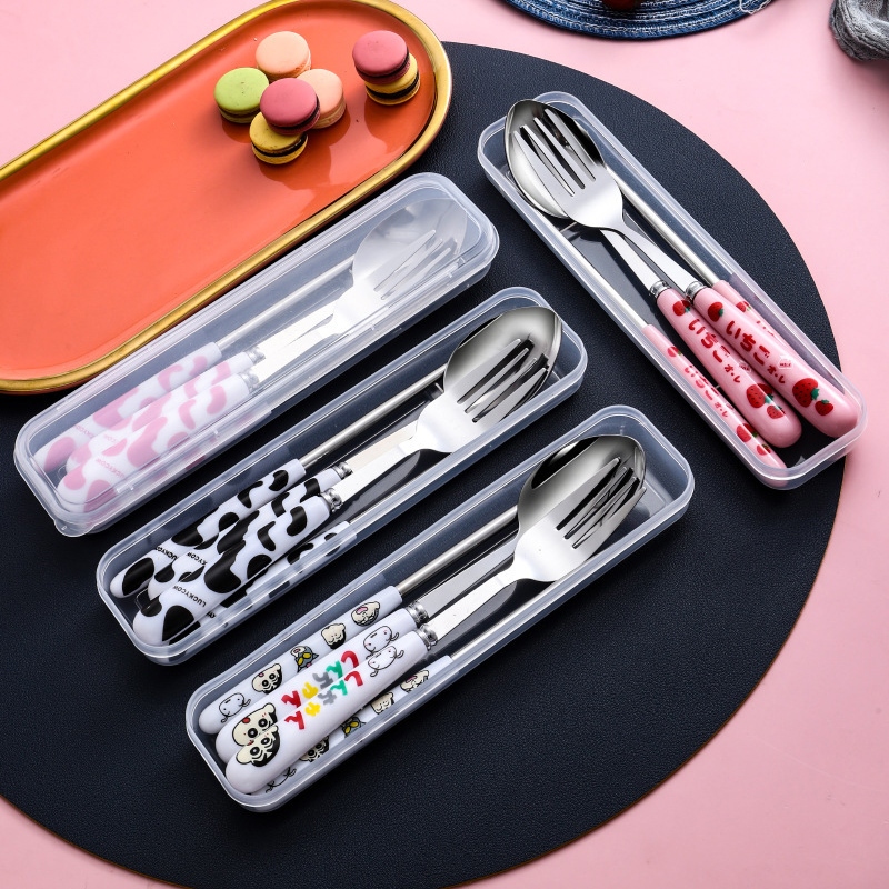Cutlery Set Portable 3 Pcs Sendok Garpu Sumpit Baja Anti Karat + Kotak