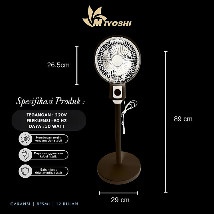 Kipas Angin Berdiri Rotation Fan Minimalis Stand Fan 180 Derajat 9 Inch Jangkauan Jauh Stand Fan Low Noise