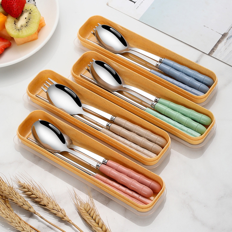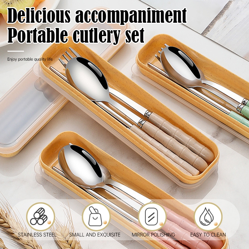 3Pcs Set Alat Makan Sendok Garpu Sumpit / Stainless Steel Spoon Fork Chopsti Portabel