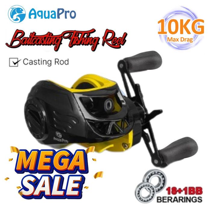 Reel Pancing Casting Fishing Rell Baitcasting RM2000 Black Yellow 18 + 1BB 7.2:1 Gear Ratio Max Drag 10KG Fishing Reel P